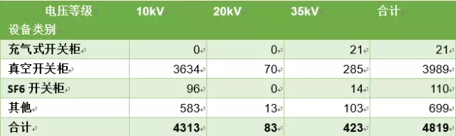 所有高壓開關柜中,真空開關柜占比達到82.78%,共計3989臺。其他類型開關柜占比17.22%,主要為SF6開關柜和無開關的母線設備柜。