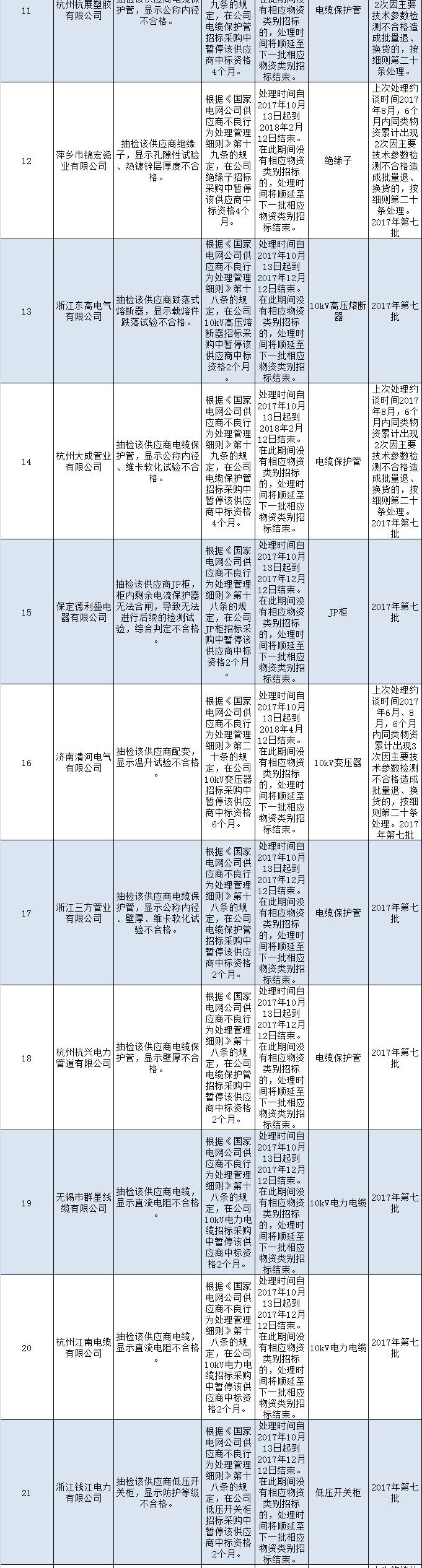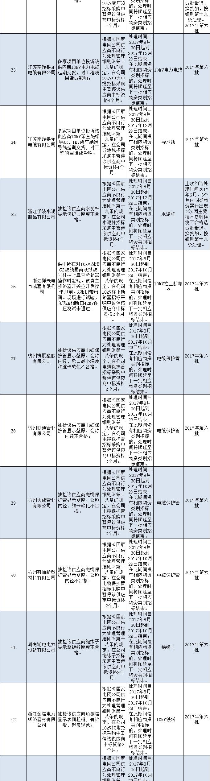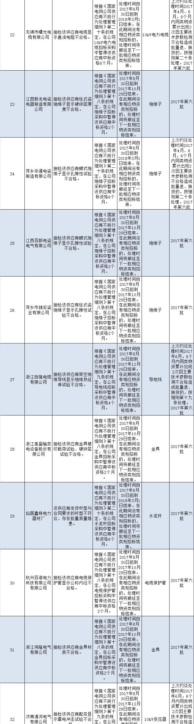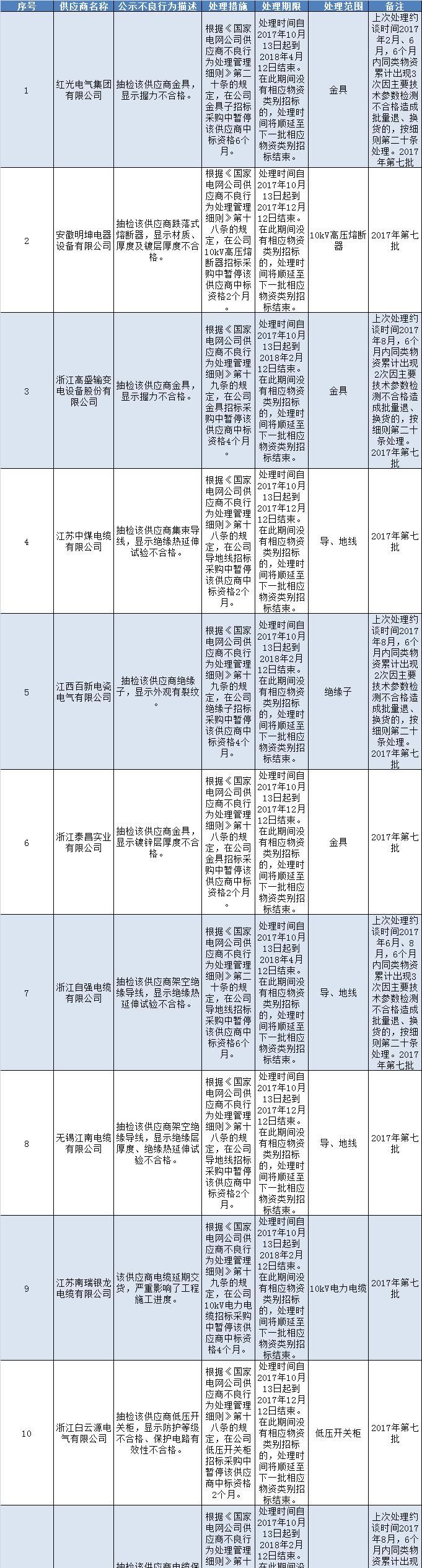 國(guó)網(wǎng)(浙江)2017年第七批供應(yīng)商不良行為處理結(jié)果