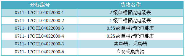 國網(wǎng)2017年第二次電能表及用電信息采集設(shè)備招標開始,招標編號:0711-17OTL04022000