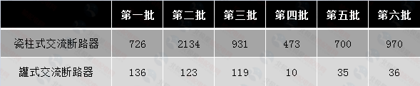 國家電網(wǎng)公司輸變電項目變電設備招標1-6批次斷路器招標總體情況