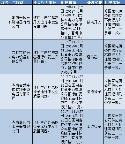 國(guó)網(wǎng)吉林省電力有限公司關(guān)于供應(yīng)商不良行為處理情況的通報(bào)