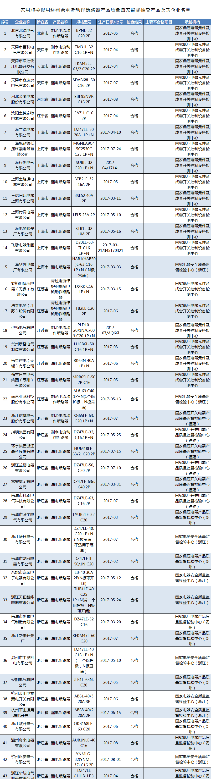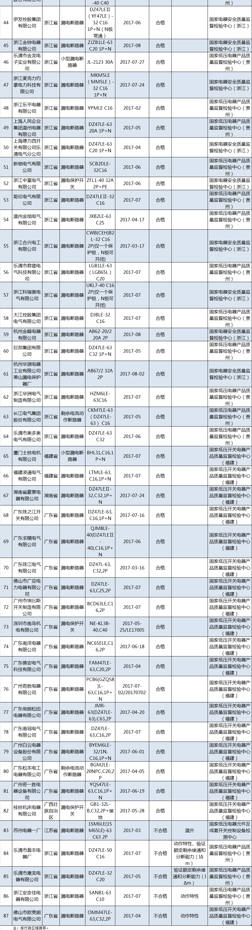 本網(wǎng)獲悉,近日國家質(zhì)檢總局進行了2017年第3批剩余電流動作斷路器的抽查,共抽查了北京、天津、河北、遼寧、上海、江蘇、浙江、福建、湖南、廣東、廣西等11個省、自治區(qū)、直轄市87家企業(yè)生產(chǎn)的87批次家用和類似用