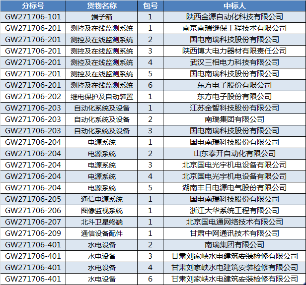 國網(wǎng)甘肅省電力公司2017年第六次物資招標采購中標公告(招標編號:GW271706)