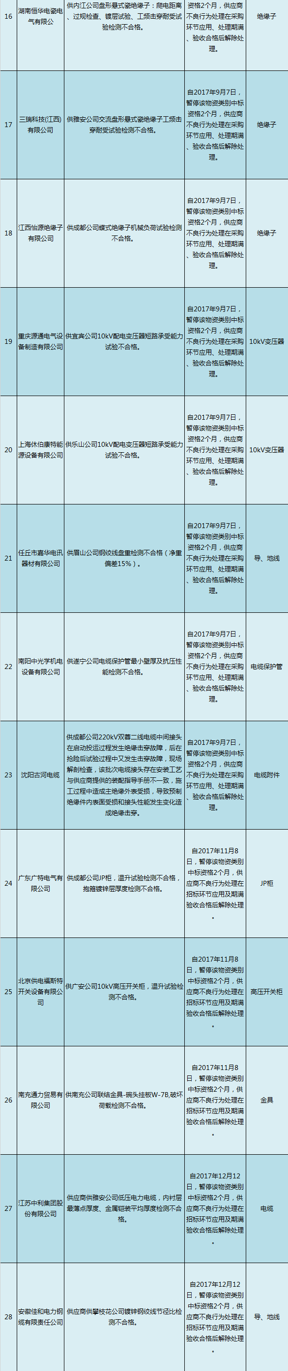 國網(wǎng)四川省電力公司2017年12月供應(yīng)商不良行為處理情況通報(bào)