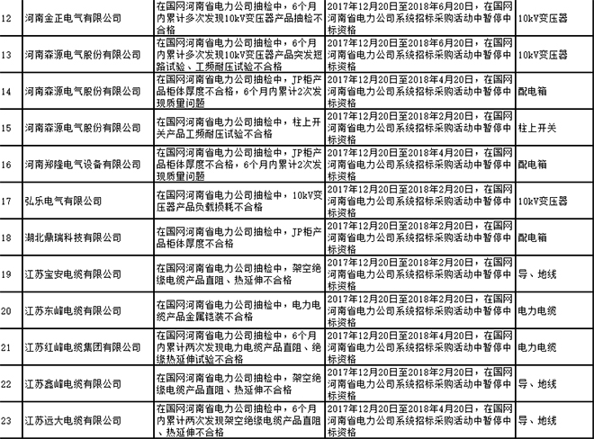 國(guó)網(wǎng)河南省電力公司2017年第四批供應(yīng)商不良行為處置通報(bào)