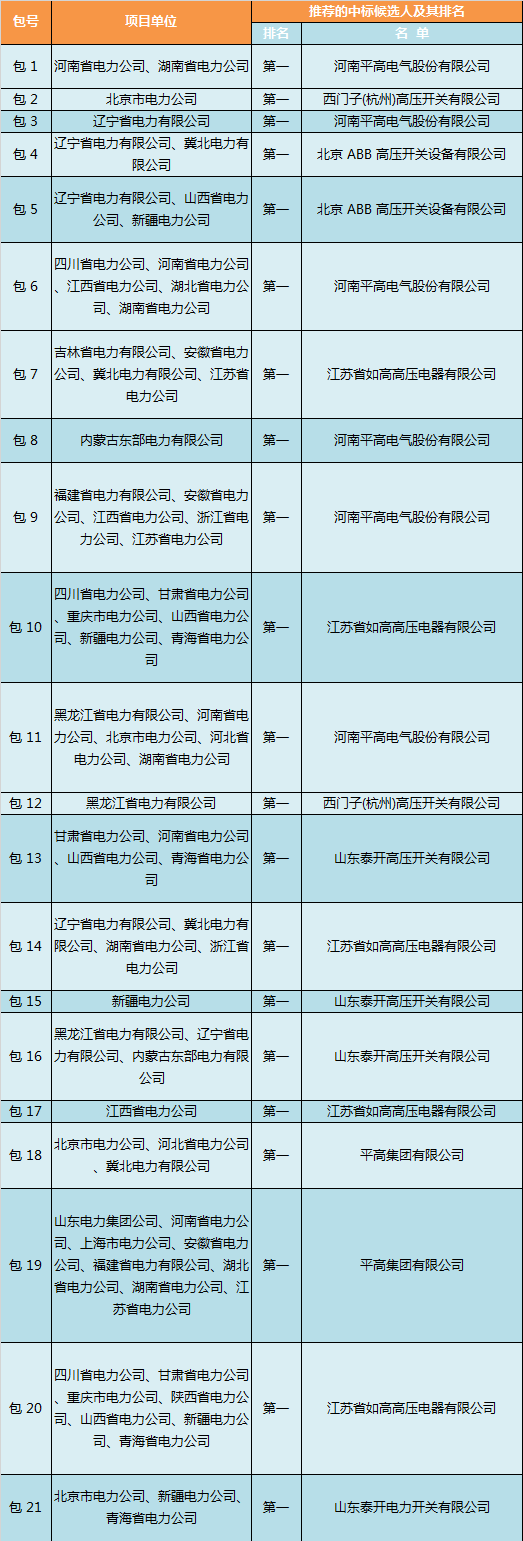 國家電網(wǎng)公司輸變電項目2017年第六次變電設備(含電纜)招標采購—斷路器(招標編號:0711-17OTL01211129)評標工作已經(jīng)結(jié)束。依據(jù)《中華人民共和國招標投標法實施條例》第五十三條和第五十四條的規(guī)定,現(xiàn)將評標委員會推薦的中標候選人予以公示,公示期3天。投標人或者其他利害關系人對依法必須進行招標的項目的評標結(jié)果有異議的,應當在中標候選人公示期間以書面形式(傳真)向招標人提出。