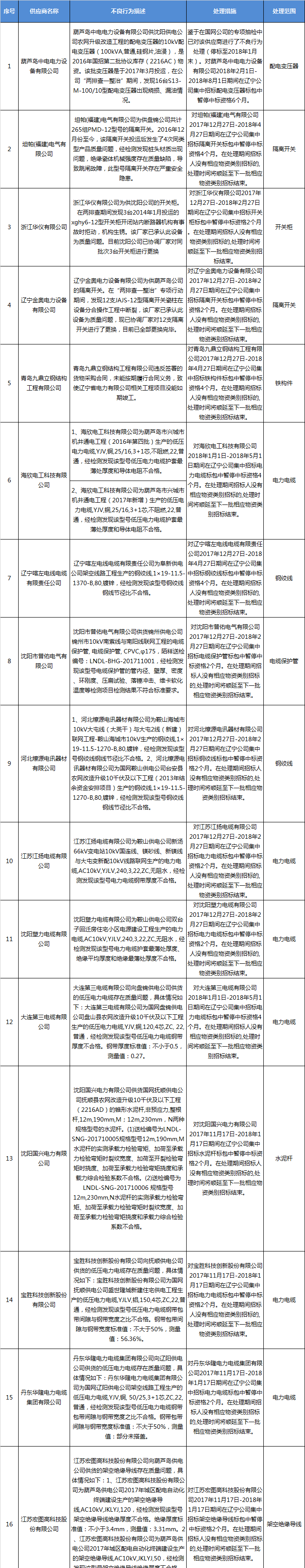 國網(wǎng)遼寧關于供應商不良行為處理情況的通報(2017年12月)
