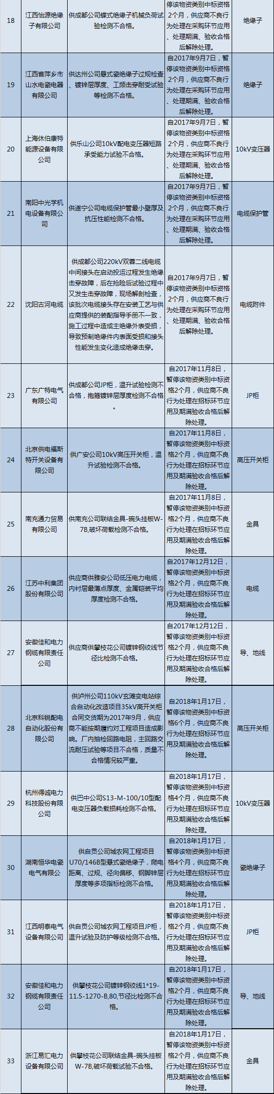 國網(wǎng)四川省電力公司2018年關(guān)于供應(yīng)商不良行為處理情況的通報