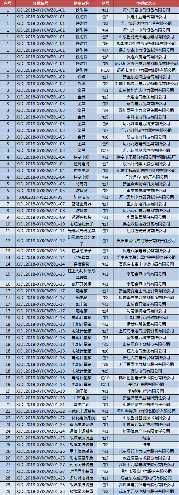 國網(wǎng)新疆2018年第一次物資協(xié)議庫存招標(biāo)采購中標(biāo)候選人公示