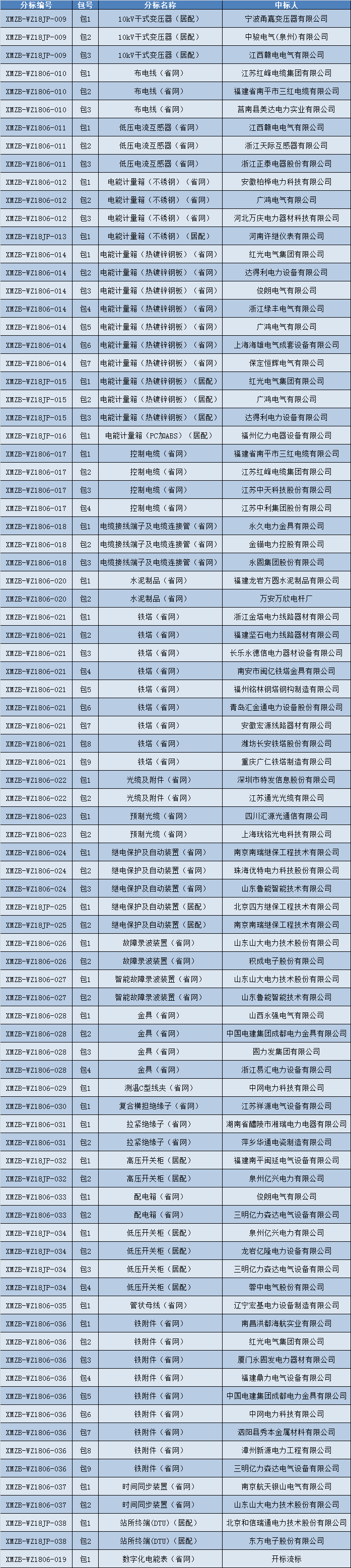 國網(wǎng)福建省電力有限公司2018年第一次協(xié)議庫存物資招標(biāo)采購中標(biāo)公告