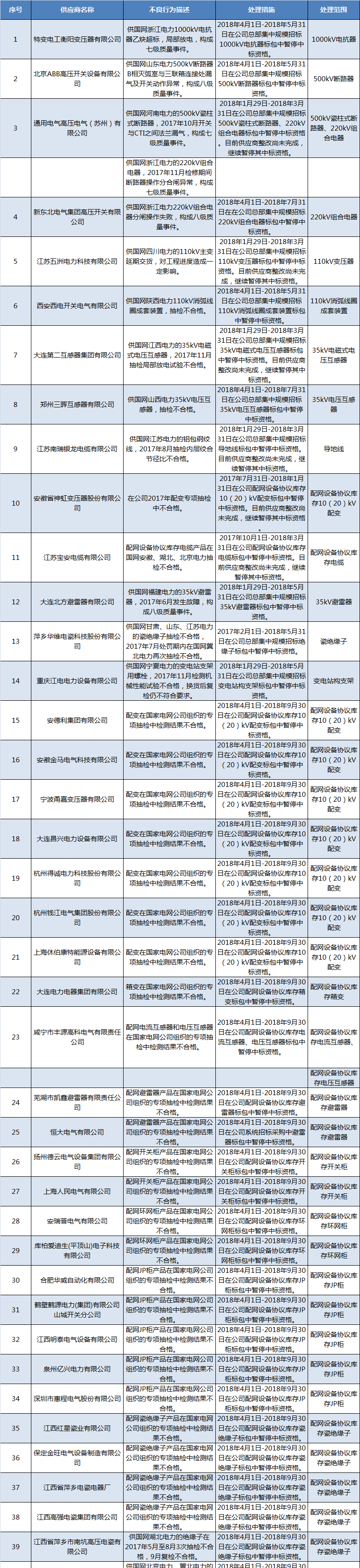 國家電網(wǎng)通報的2018年3月供應商不良行為處理情況