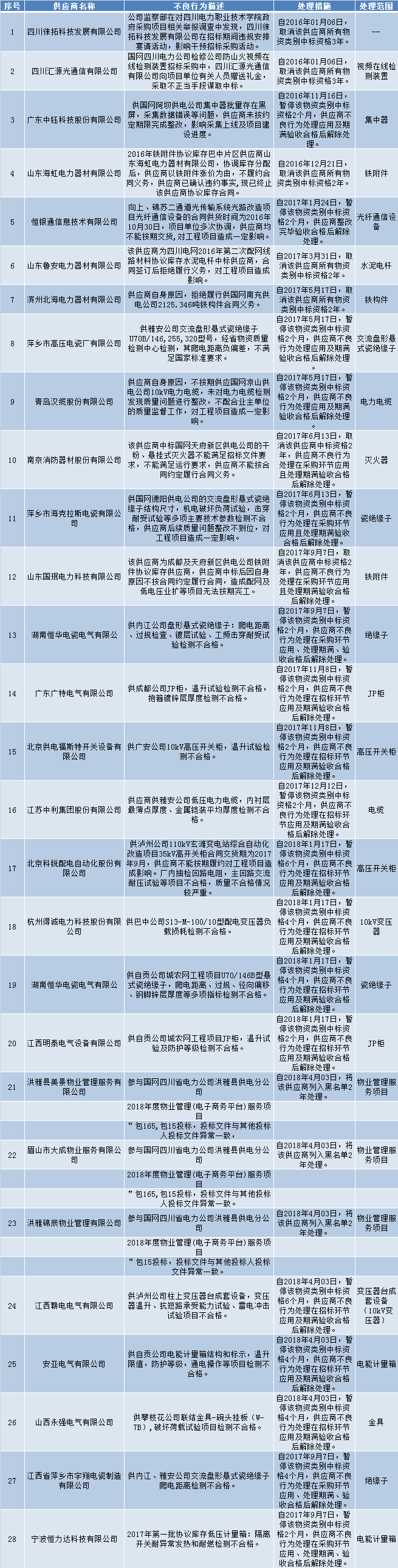 國(guó)網(wǎng)四川通報(bào)的供應(yīng)商不良行為處理情況