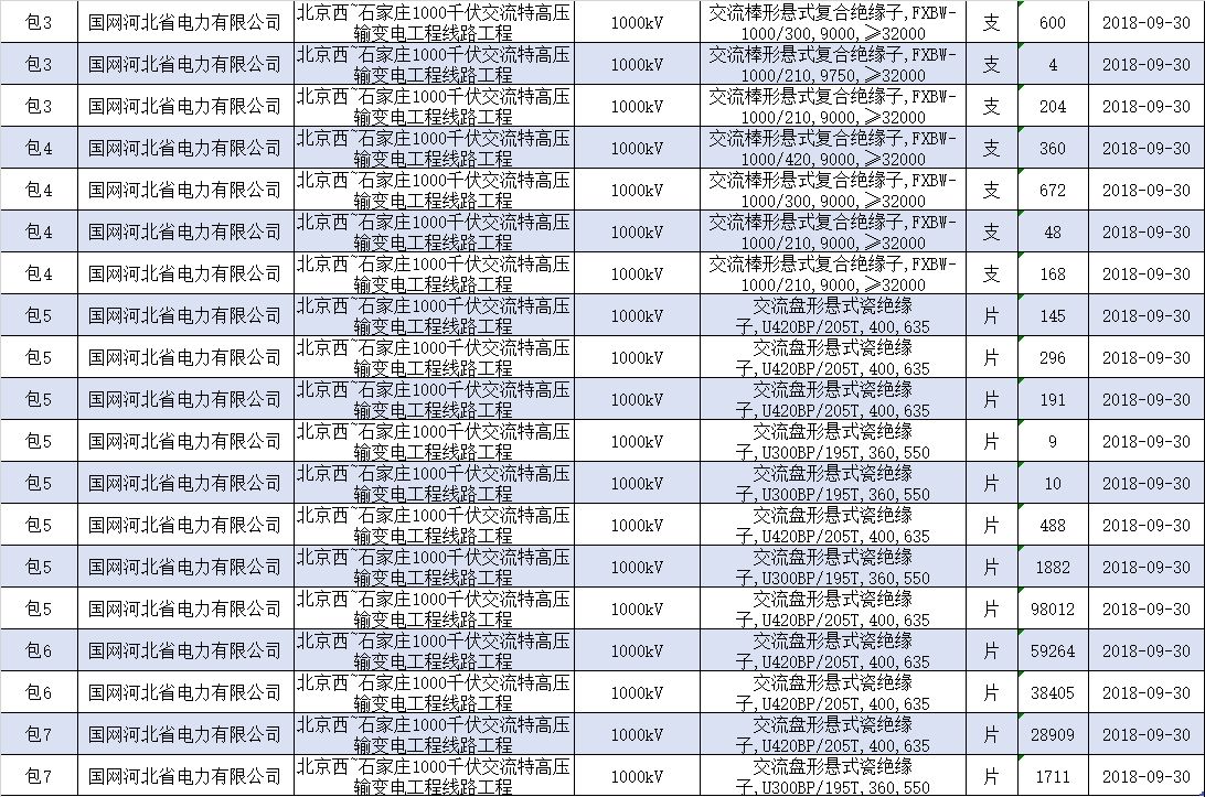 國家電網(wǎng)有限公司2018年北京西~石家莊1000千伏交流特高壓工程導(dǎo)線集中招標(biāo)活動公布,其中涉及光纜、線路金具、絕緣子、導(dǎo)線四類物資,具體