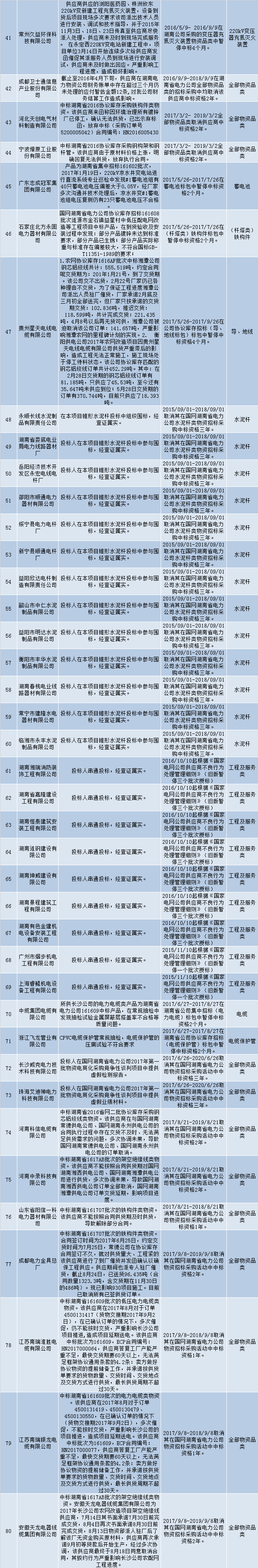 國網(wǎng)(湖南)通報的供應商不良行為處理情況(2018.4)