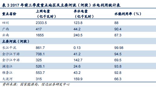 2017年前三季度,我國重點省份及主要河流(河段)利用良好,除了金沙江中游和大渡河地區(qū)水能利用率不到70%,其他地區(qū)和河流水能利用率都在85%以上,廣西地區(qū)超過90%,長江干流、金沙江下游、瀾滄江、雅礱江均超過90%。