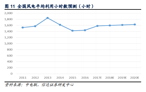 隨著可再生能源開發(fā)利用機制的逐步完善、電網(wǎng)關(guān)鍵平臺作用的充分發(fā)揮、電源結(jié)構(gòu)與布局的加快優(yōu)化、可再生能源電力本地消納的強度增加、以及市場機制與政策的逐步完善,未來棄水棄風(fēng)棄光率都基本解決。隨著風(fēng)電投資、建設(shè)爆發(fā)式增長階段已經(jīng)過去,未來棄風(fēng)率將會逐步下行。我們預(yù)計,到2020年,風(fēng)電全國平均利用小時數(shù)將超過1,600小時。